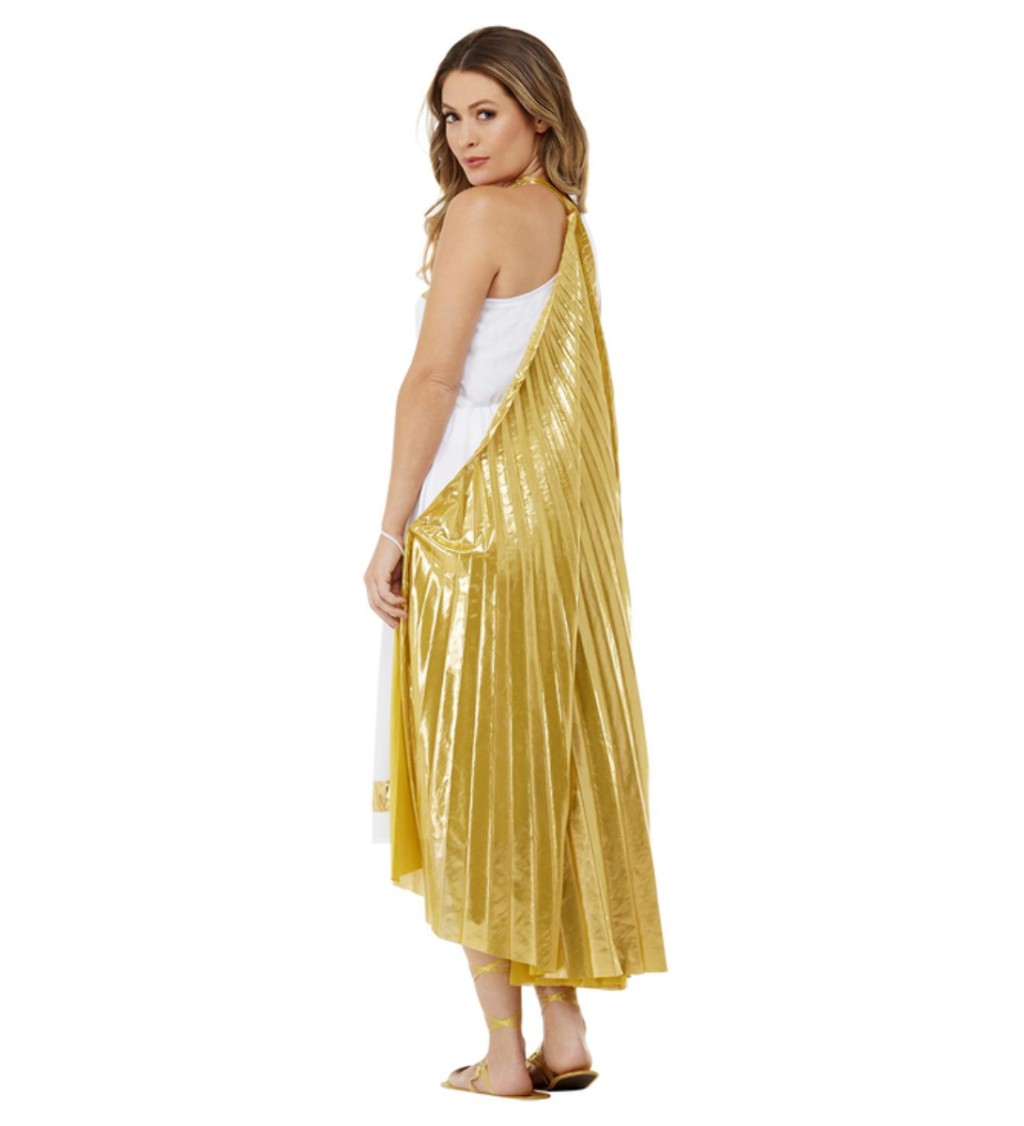 Skvěle doladí váš kostým. Luxusní řecký plášť, zlatý, s křídly, 190 cm/75 palců