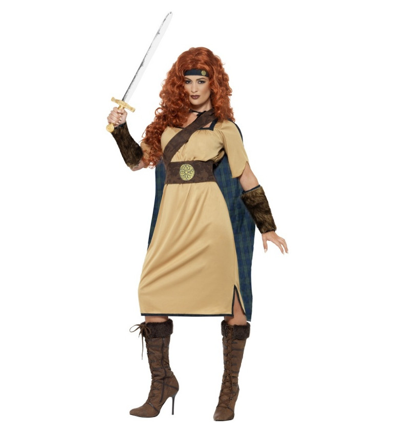 Dámská paruka středověké bojovnice je ideální na historickou párty. Tyto husté zrzavé vlasy skvěle doplní kostým královny válečnice.