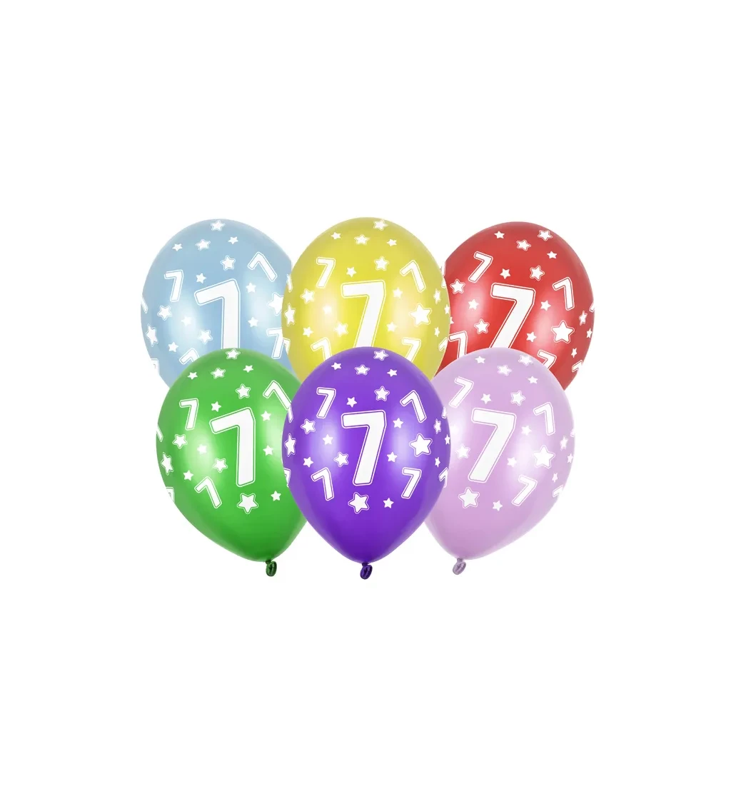 Latexové balónky metalické číslo 7 mix 30 cm 6 ks