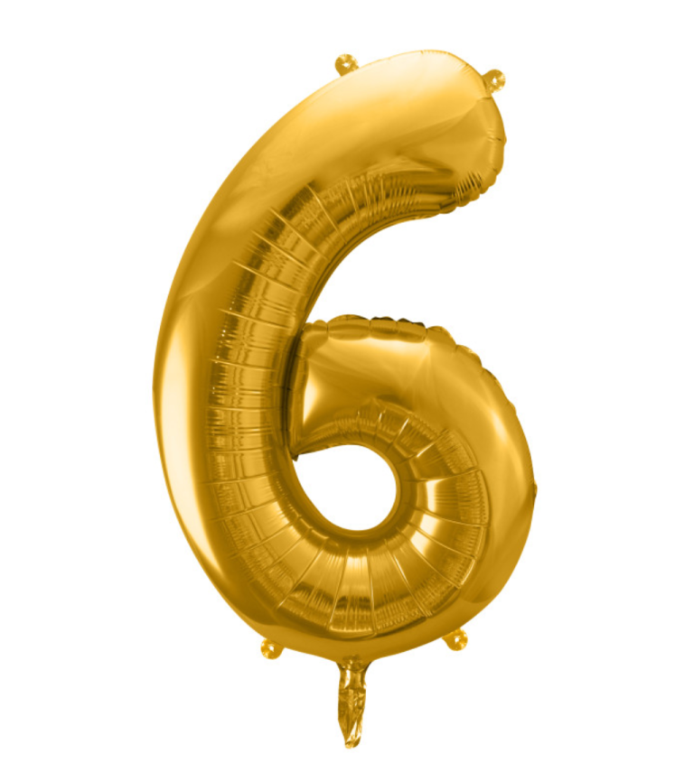 Zlatá dortová svíčka s číslem 6 bude vypadat krásně na každém dortu. Rozměry: 9,3 cm