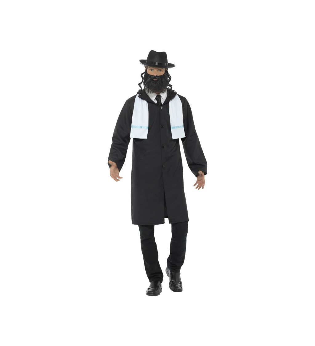 Pánský kostým rabína je vhodný na večírek v židovském stylu. Tento pánský převlek se skládá z kabátu s částí košile a kravaty, klobouku s vlasy a bílé šály.
