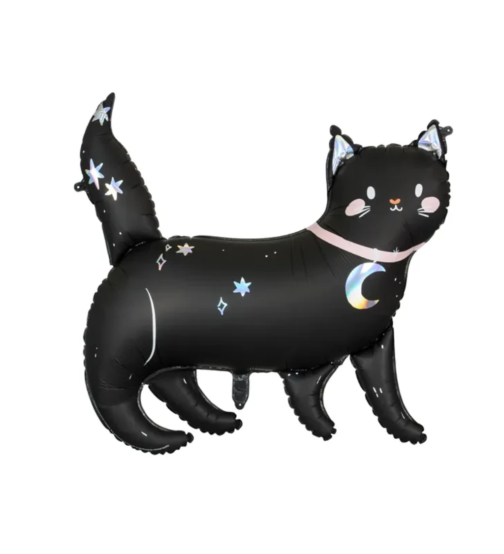 Stylový fóliový balónek ve tvaru černé kočky je ideální pro Halloween, tematické oslavy nebo jako originální dekorace pro děti.