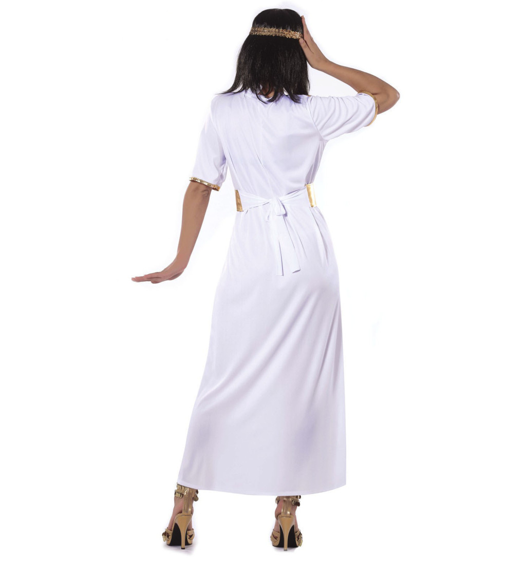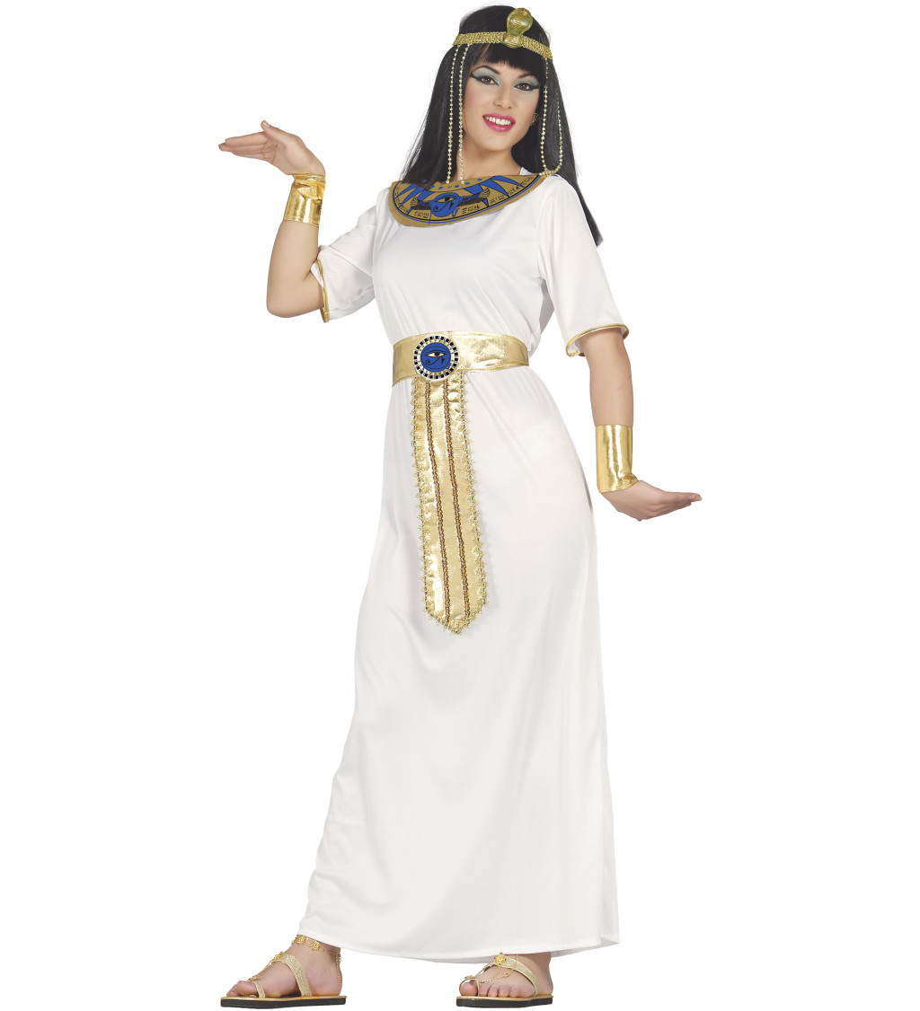 Dámský kostým Kleopatra vyzařuje elegance a mystiku. Šaty se dokonale hodí k smyslné siluetě a zdůrazňují krásu postavy. Páskem se doplňuje celkový vzhled, přičemž vytváří charakteristický styl egyptské královny. Ideální na tematické party či karneval.