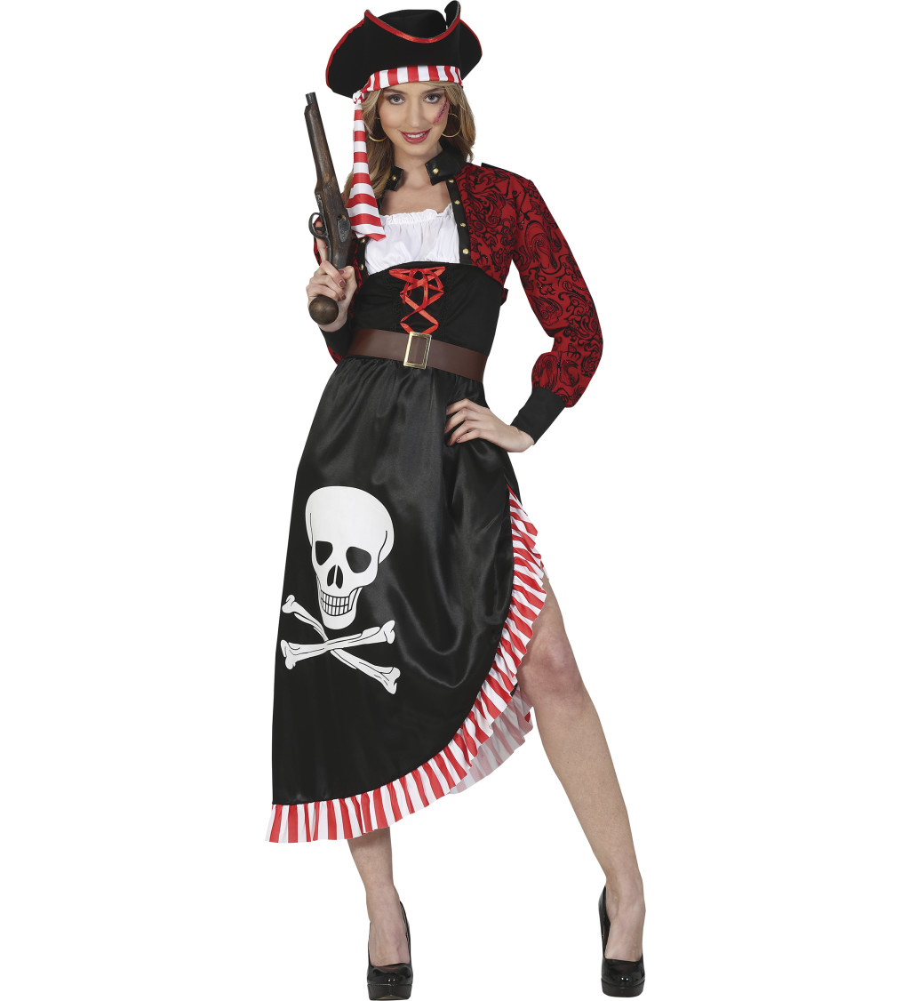 Staňte se neohroženou pirátskou bojovnicí s tímto úchvatným dámským kostýmem! Kostým zahrnuje stylovou bundu, tričko, provokativní šaty, klobouk a pásek, které dodají vaší postavě dravý nádech. S tímto outfitem jistě zaujmete na každé pirátské oslavě či karnevale!