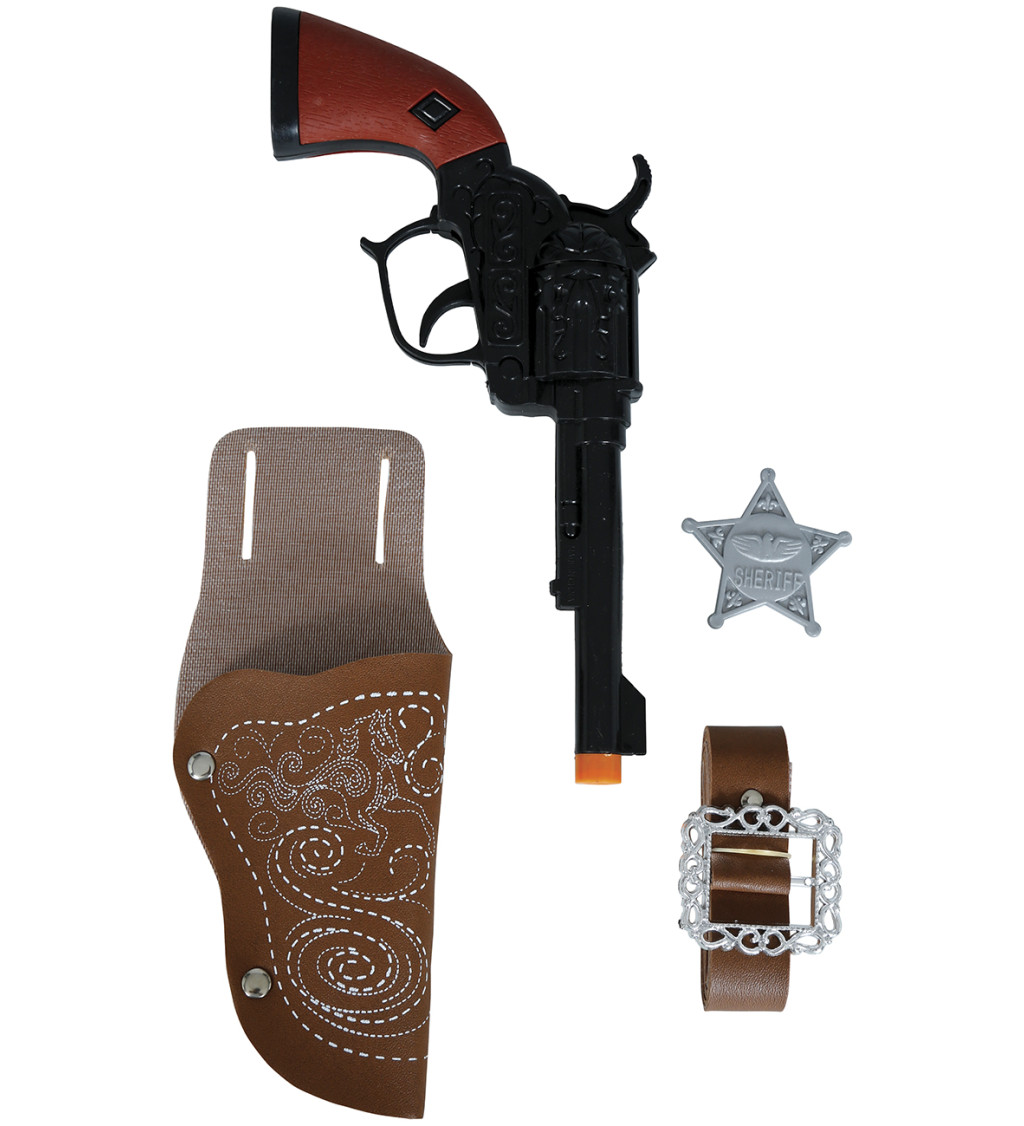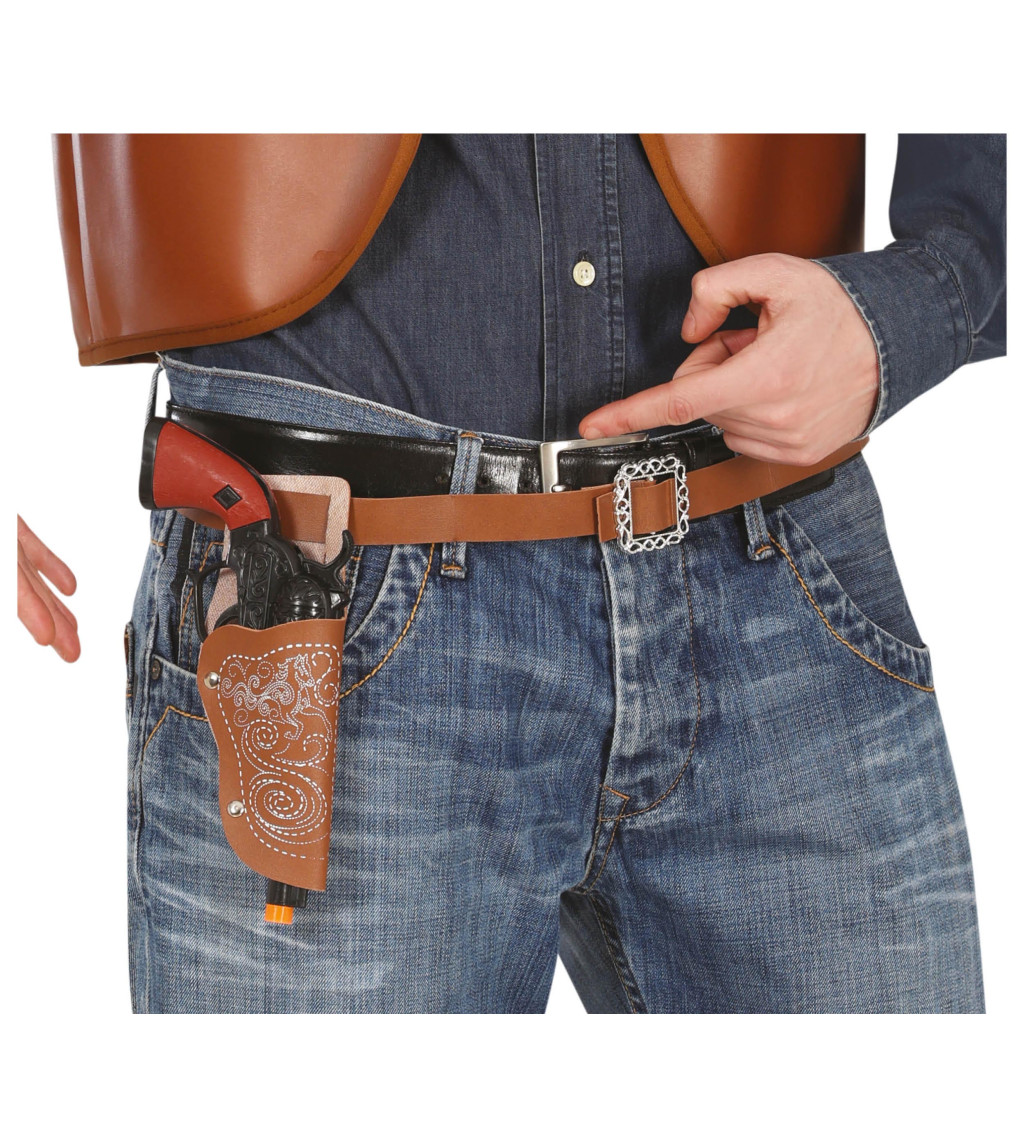 Tato sada kovboje je ideální doplněk pro všechny, kteří se chtějí cítit jako opravdoví hrdinové Divokého západu. Hodí se na westernové téma akce jako jsou karnevaly, večírky nebo festivaly. Díky této sadě, která zahrnuje pásek, pistole a pouzdro, budete moci dokonale vtvořit image kovboje a užít si Westernový zážitek.