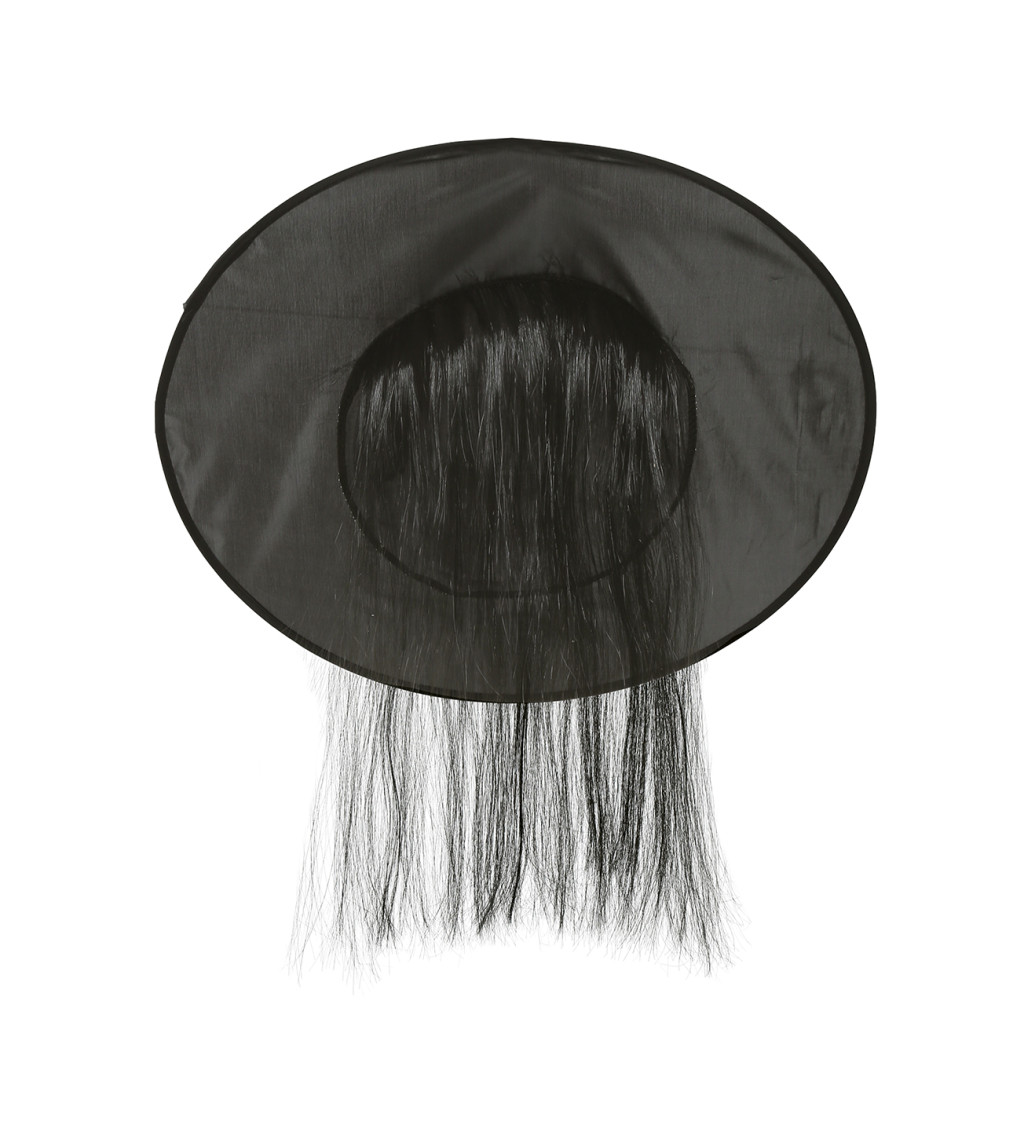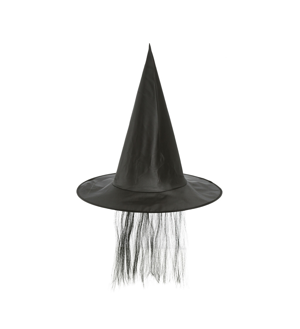Vlasy jsou k klobouku připevněny, takže už nic nemusíte dodělávat – stačí nasadit a jste připraveni na každou magickou párty nebo Halloween.