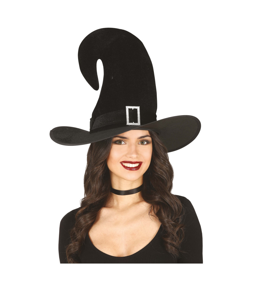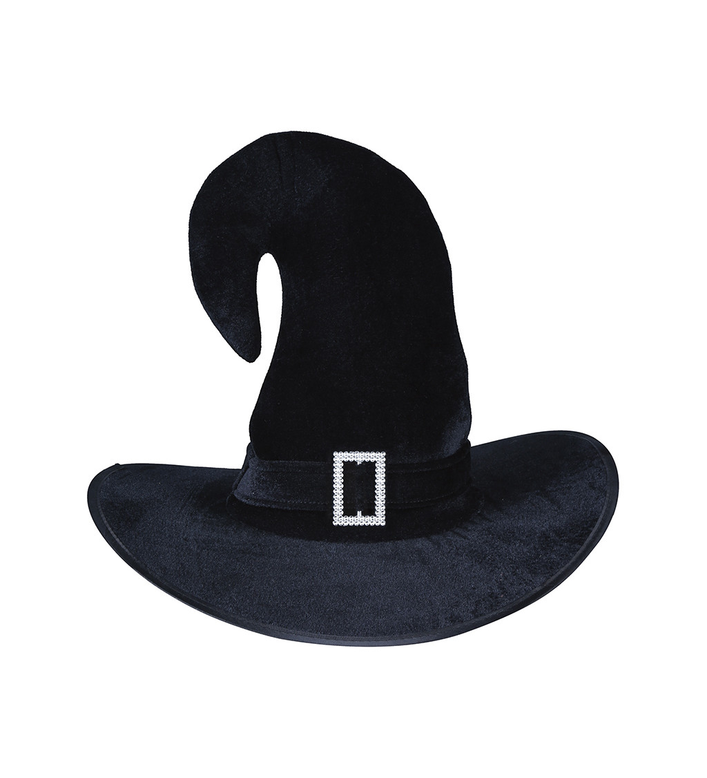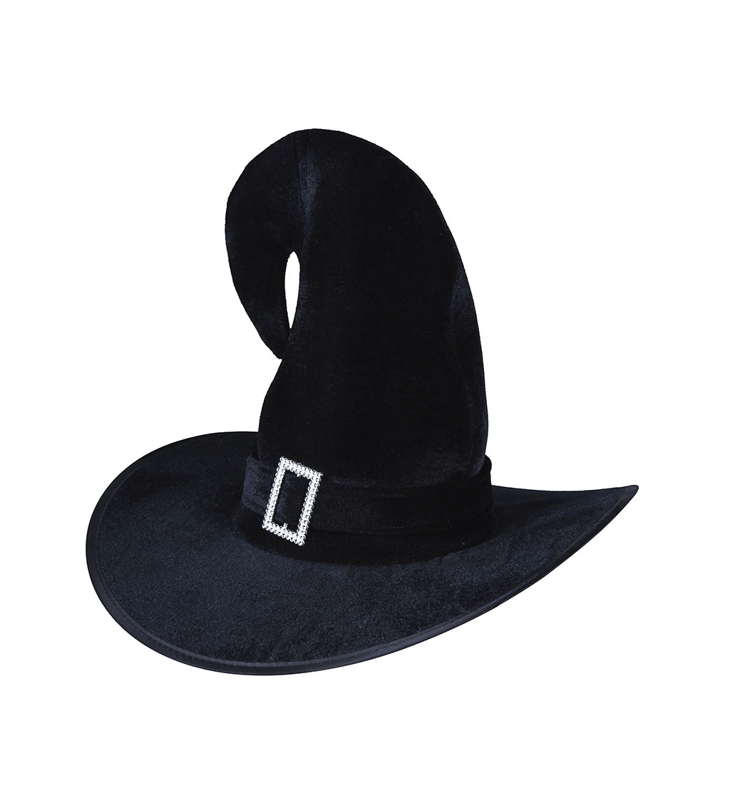 Elegantní sametový čarodějnický klobouk s netradičně zahnutou špičkou dodá vašemu kostýmu pořádnou dávku stylu!